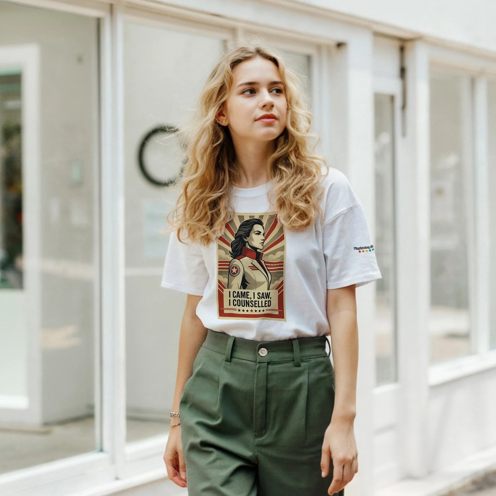 Dieses T-Shirt ist nicht einfach nur ein Kleidungsstück – es ist ein Auftritt. Mit dem kraftvollen Aufdruck „I came, saw and counselled“ setzt du ein unmissverständliches Zeichen: Du bist da, wenn es zählt. Du siehst, was gebraucht wird. Und du berätst mit Kompetenz, Klarheit und Herz.